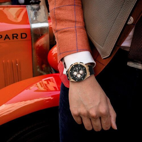 时尚复古的表盘,带有能量显示和秒针小表盘,让你清楚了解手表的各个指标。透视后盖,让你感受精湛机械的魅力。