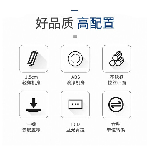 轻薄机身携带方便,采用高档材质,表面光滑易清洁,适合烘焙类称重,轻松掌握食材均衡配比。