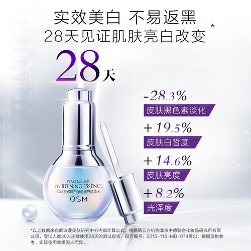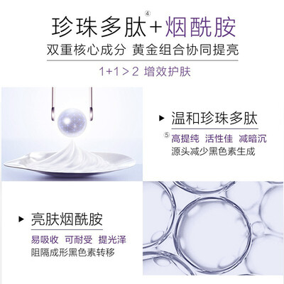 其珍珠多肽成分,采用黄金配比,淡化肌肤产生的暗黄和长斑。温和配方,让肌肤均衡美白,提亮肤色。