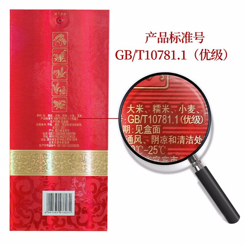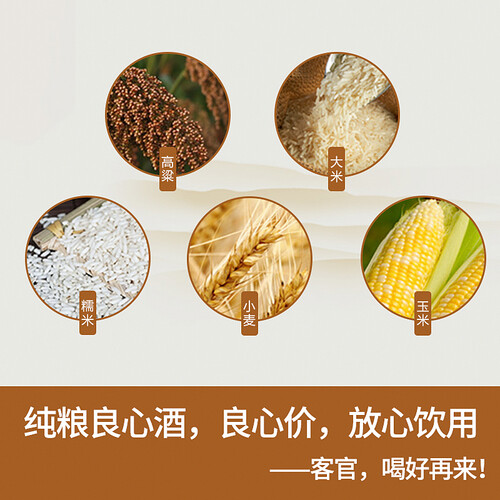 优质粮食原料,绿色无污染,酒味绵甜醇厚,甘冽净爽。采用古法制曲工艺,谷物更好更充分的发酵,酒味浓厚香醇。