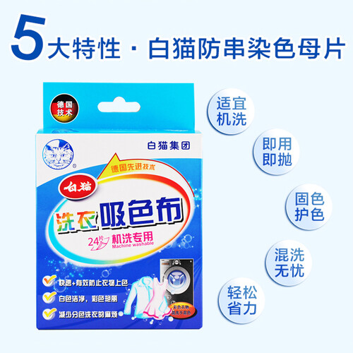 采用水刺法非织造布制成,有效为衣物固色,吸附游离色彩分子,使衣服色彩持久亮丽。即用即抛,使用方便,可用于机洗。