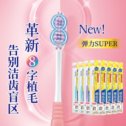 8字植毛,外部刷毛柔软,内部刷毛偏硬,有效清洁齿面齿沟,不伤害牙龈;刷颈具有弹性,可弯曲,刷牙时不会伤害口腔。