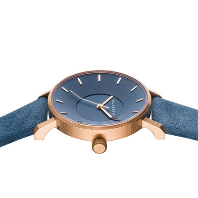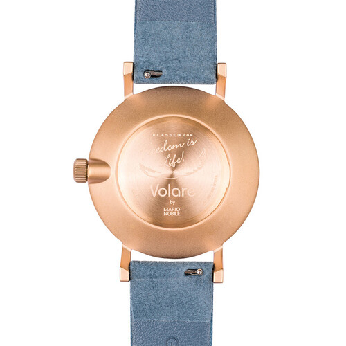 采用麂皮材质表带,柔软又温暖,贴合皮肤更加适合秋冬佩戴。运用雄鹰的灵感,将镜面和指针设计为凹陷式,这更代表了自由。