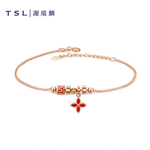 采用红色四叶草坠饰,融入立体车花镶边工艺,彰显温柔淑女气质。可转动数字串珠,增添几分俏皮活力,闪耀出时尚光泽。