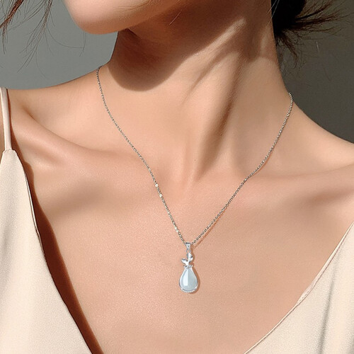 精选925银材质的链条,保持金属感,佩戴起来不会刺激肌肤。优质的翡翠吊坠,精致又优雅,显得轻巧细致。