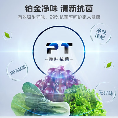 美的 铂金净味对开门冰箱