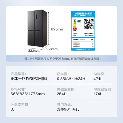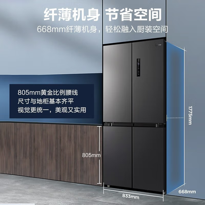 美的 纤薄十字对开门冰箱