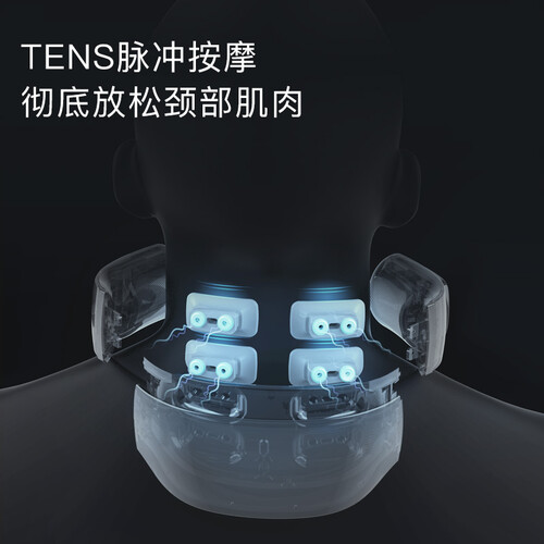 设有4颗浮动按摩头,不仅灵活贴合不同人的颈部轮廓,还显著提升了按摩面积,并且形成全向包裹,避免了电极偏离造成的不适。