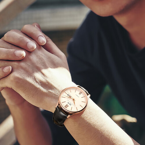 打磨细致的18K金表壳,手感光滑,释放奢华光彩,给予舒适的佩戴体验。加持牛皮表带,带来更加立体的视觉效果,更显轻奢格调。