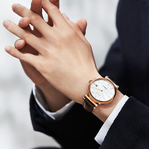 优选牛皮表带,纹理细腻,佩戴手腕凸显身份地位,职场俏佳人优选。表圈镶嵌钻石,散发光泽,享受读时瞬间。
