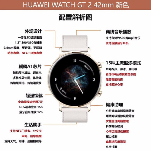 搭载麒麟A1芯片,实现低耗能长续航能力,节能省电。支持15种运动模式,清晰记录运动效率,助力你的塑身计划。