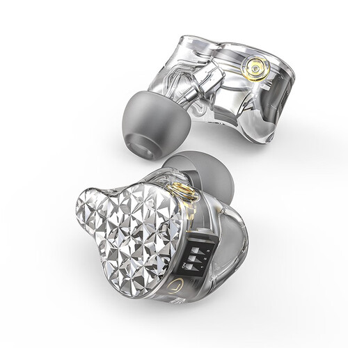 耳机面盖精选钻石切割设计,加上半透明无缝腔体材质,有着闪耀的效果,十分迷人。三挡开关可自由调节,满足不同需求。