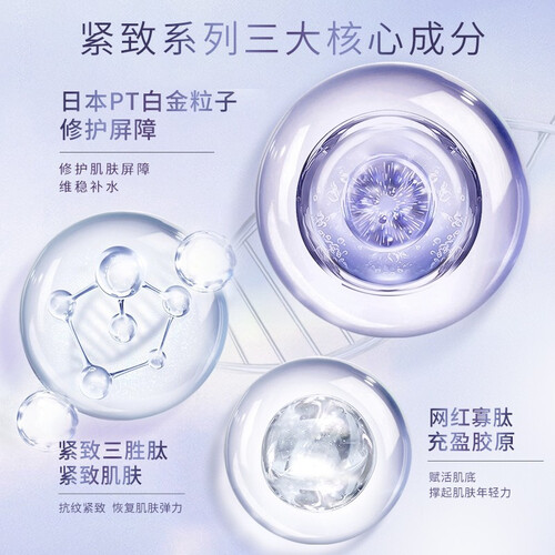 拥有温和的质地,使用亲肤不刺激,敏感肌肤也可安心使用。搭配寡肽的良好修护功效,有效改善细纹,塑造紧致肌肤。