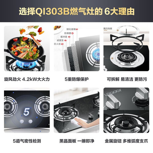 采用钢化玻璃+镀膜面板,新颖别致,打造简洁时尚的厨房。使用黄金网孔的瞬吸油网,快速吸油,减少清洁负担。