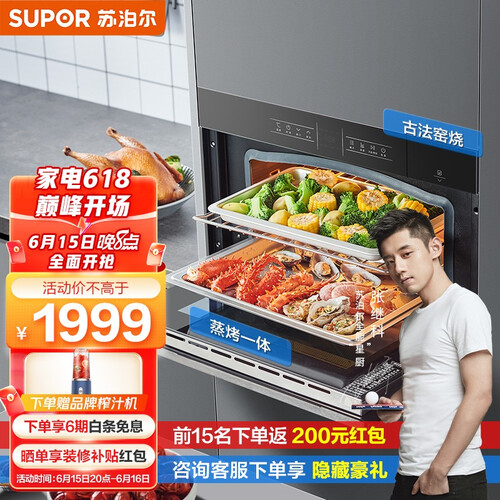 30℃-220℃宽域控温,烘焙各种各样的食物。配置了NTC电子感温探头,实时监测腔内温度,准确灵敏。