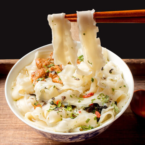 地道爽滑口感,面细腻筋道,入口风味十足。特色花边面体,中间厚两边薄,容易煮熟入味。非油炸制作,健康有营养。