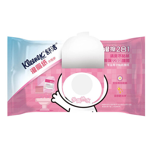 舒洁女性湿厕纸,专为女性定制,内含温和洋甘菊溶液,温和不刺激,能够有效擦除99.99%的细菌,让姨妈期间更加清爽舒适。
