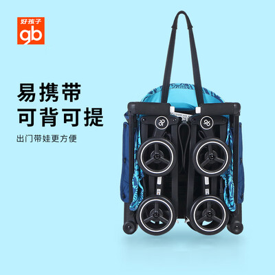 婴儿推车具有快速折叠功能,车身收纳后轻盈小巧;同时还配备伸缩式背带,可拎可背行,换乘交通工具无忧。