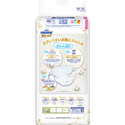 表层添加了自然棉,温和亲肤透气,时刻呵护宝宝娇嫩肌肤。满满的吸收力可持续12小时,宝宝安心,妈妈更放心。