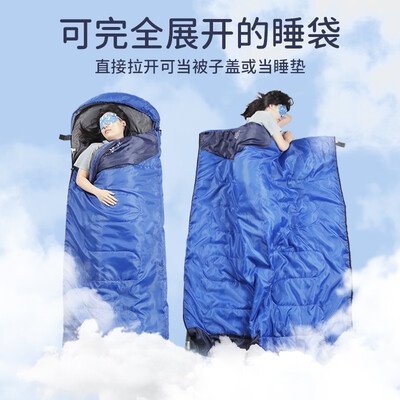 睡袋柔软舒适,在户外也能睡个好觉。外层采用的是防水面料,内里中空棉填充。