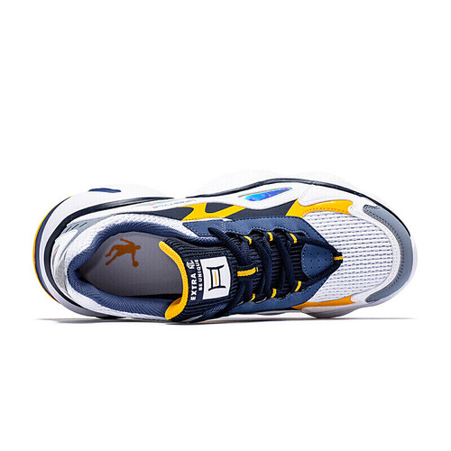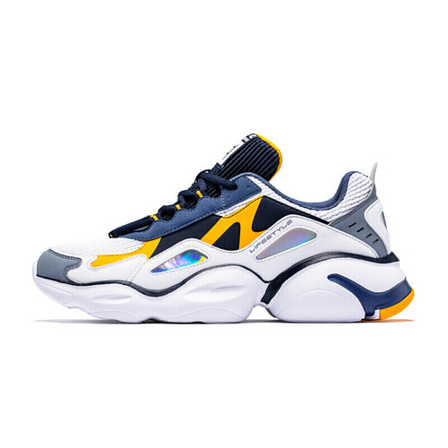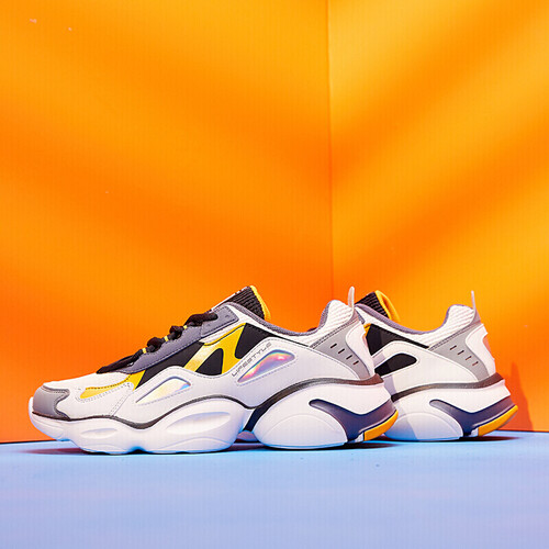 鞋面采用多材质撞色拼接设计,外观潮流吸睛,打造轻质透气的穿着体验。大底融入几何图形防滑纹理,有效分散足底压力。