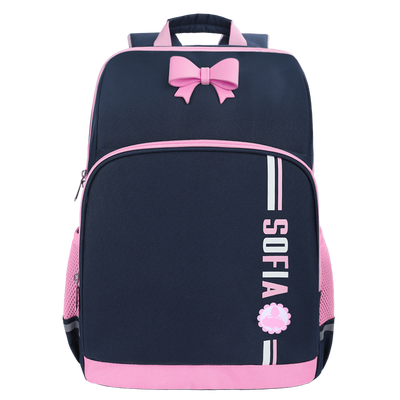 甜美可爱的包面,精美的银丝线立体刺绣点缀,做工精致细腻,体现公主范。切割式U型弹性背幅,贴合背部,受力均衡。