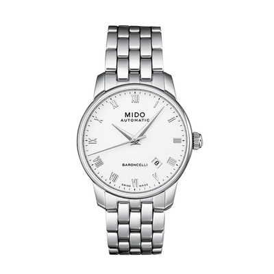 经典三针表盘设计,搭配罗马数字刻度,时间直观易读。表带精钢材质打造,细腻抛光处理,佩戴顺滑亲肤。