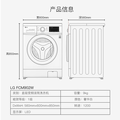 电机同轴驱动,有效减少摩擦和震动,洗涤更加安静。9KG大容量,满足大件衣物洗涤,使用更方便。