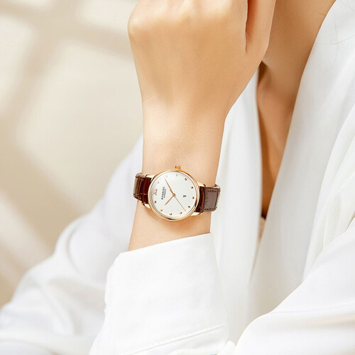 简约硬朗的表盘,凸显佩戴者低调沉稳的魅力,搭载精细工艺打磨抛光的不锈钢表壳,赋予手表亮泽的光芒。