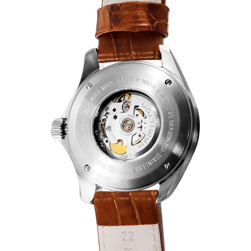 黑色表盘搭配棕色表带,显得低调,沉稳大方有个性。人工合成蓝宝石水晶玻璃表镜,质地通透。