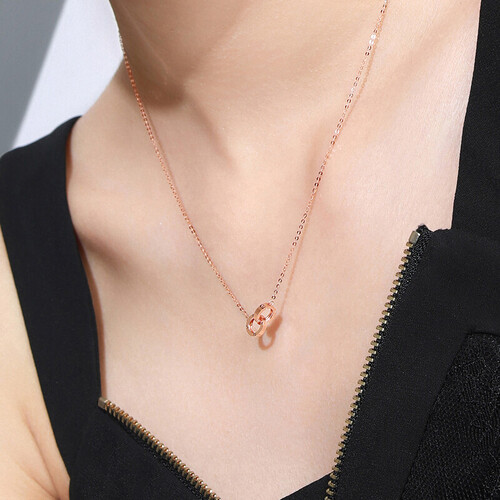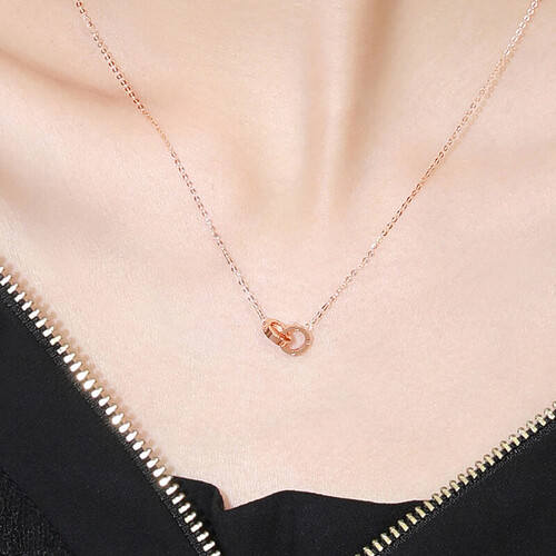 双环紧紧相扣,一圈美好一圈幸运,寓意美好。靓丽的玫瑰金加闪耀车花,摇曳间的光泽明艳动人。