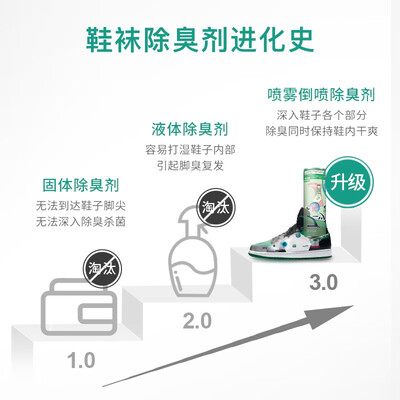 这款除臭喷雾喷出来的雾很细,喷完后迅速挥发,不会形成大面积水渍,喷完即穿,简单方便,省心省力。并且适合多种鞋型。