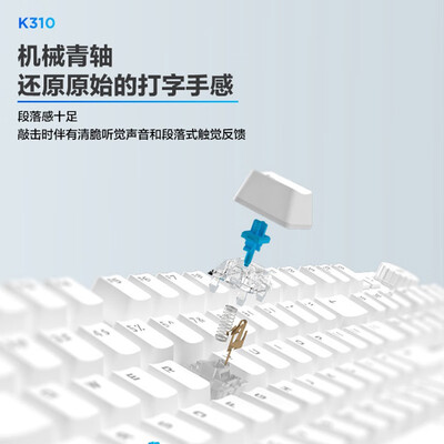 键帽配色随心搭配,磁吸上盖轻松换装,任性DIY。机械青轴,段落感十足,敲击时伴有清脆听觉声音和段落式触觉反馈。