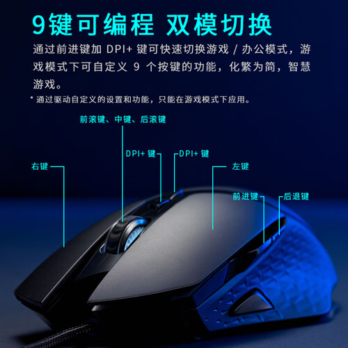 内凹防滑侧裙,避免手滑的情况出现,提供舒适承托。电竞式光学传感器,能准确定位每一帧,捕捉到细微的操作。