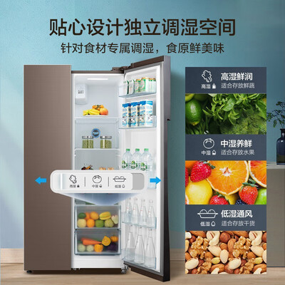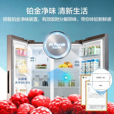 装有铂金净味保鲜装置,及时分解异味,让冰箱整日清新。独立调湿空间,延续食材新鲜滋味,让家人可随时品尝到鲜美食材。