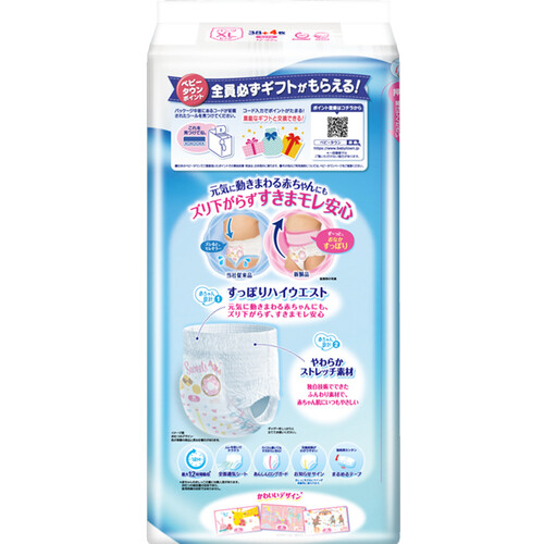 全面透气层的设计快速排出湿气,告别红屁屁,宝宝更舒适。强劲的吸收力支持12个小时的使用,守护宝宝安睡。