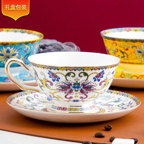 心饰园 珐琅彩中式骨瓷咖啡杯