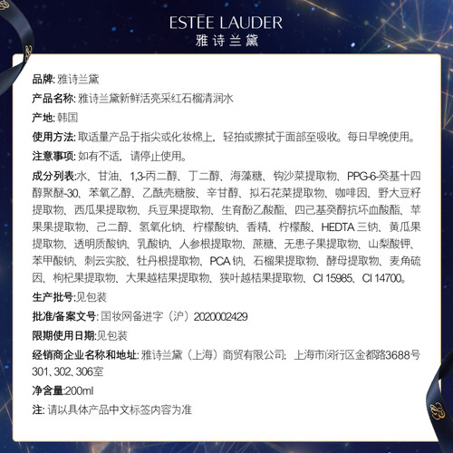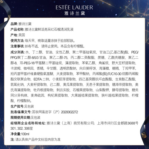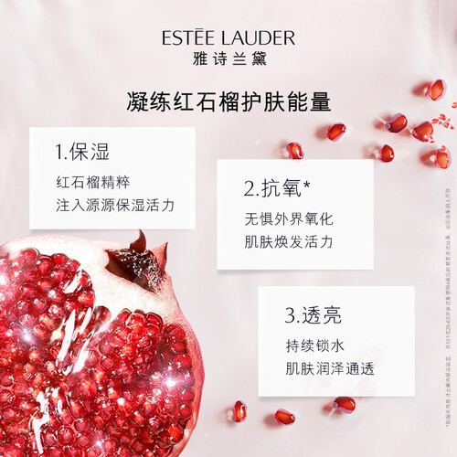 蕴含红石榴精粹,能防止肌肤氧化受损,皮肤透亮有光泽。乙酰壳糖胺成分,能为肌肤补充透明质酸,做到长久保湿。