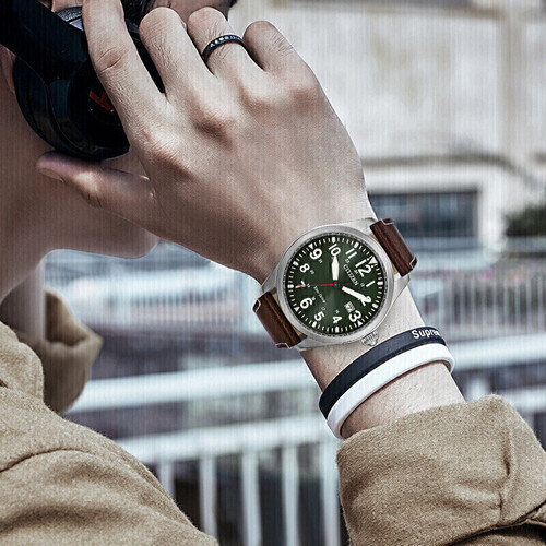 采用了矿物强化玻璃镜面的设计,透明度更高,耐磨防刮,带来更清晰的视觉效果。搭配皮质表带,柔软贴合,佩戴更加舒适透气。