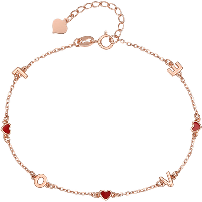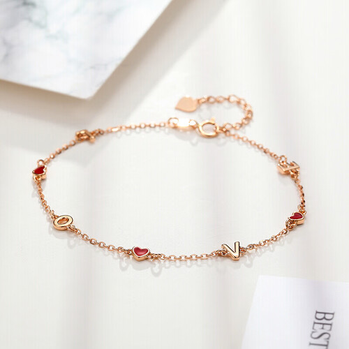 爱心元素的设计,充满了浪漫的感觉,与LOVE字母结合在一起,可以送给喜欢的人。再加上延长链设计,修饰自己的手腕。