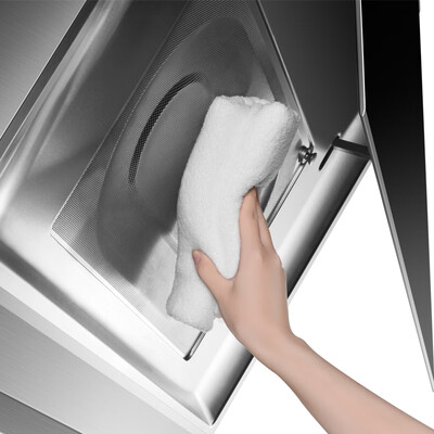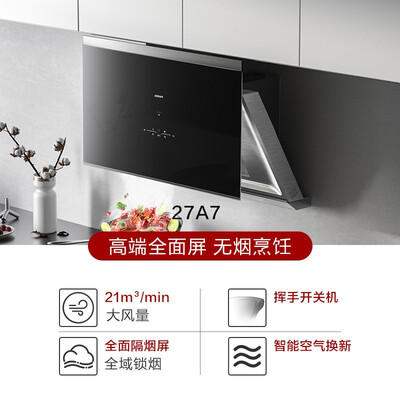 全面屏设计百搭厨房尽显格调,拢烟面积大爆炒不油腻,大风力吸力效果更强劲,一体成型钢化面板日常清洁轻松方便。