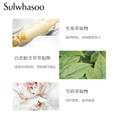 富含人参提取精华,为肌肤带来丰沛的营养物质。天然的芍药萃取物,深层呵护肌肤,白花蛇舌草能够让肌肤更加通透润泽。