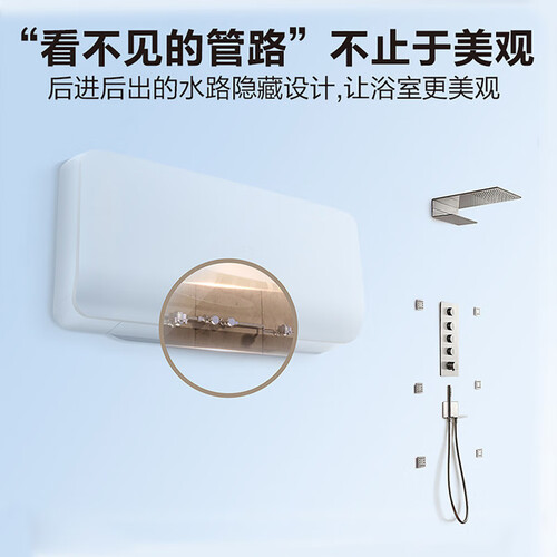 镜面触控设计,显示清晰,触控灵敏,操作简单方便。采用后进后出水路设计,隐藏水管,让浴室整洁美观。
