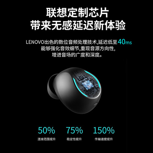 黑科技智能芯片,传输性能强,连接稳定不延迟。搭载联想黑科技智能芯片,延迟更低,声音更动听。