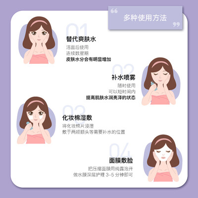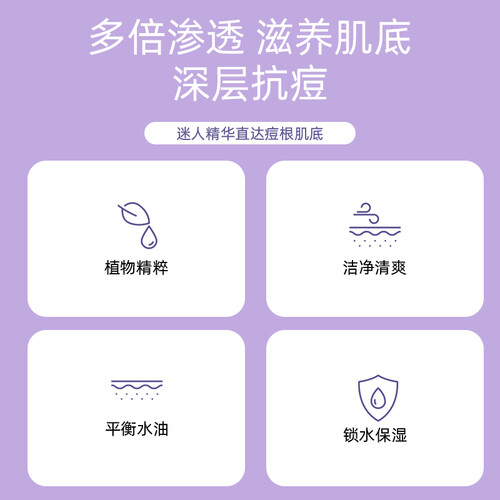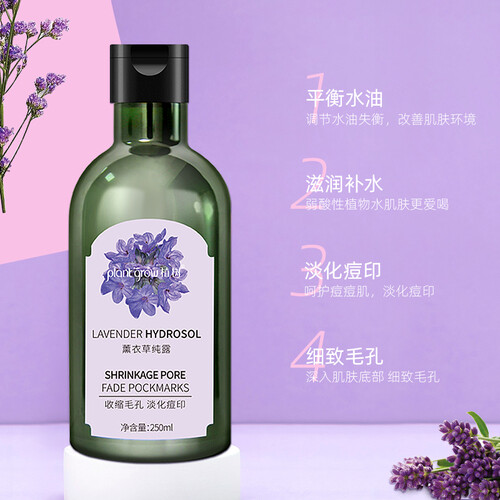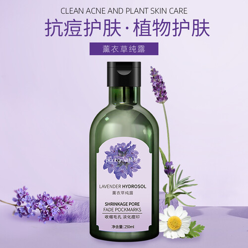 新鲜的薰衣草花朵提取出高品质的薰衣草纯露,弱酸性的植物成分,亲肤易吸收,帮助平衡肌肤水油,呵护痘痘肌肤淡化痘印。