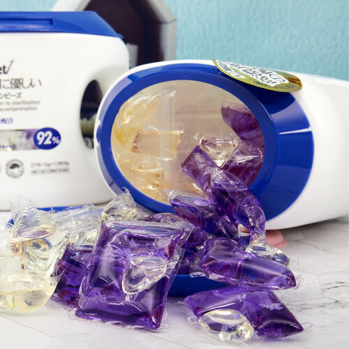 将精华集融合成小颗粒状,轻松抛入洗衣机一同清洗即可。洁净衣物的同时也能够亲肤护色,赋予您多重洁净体验。