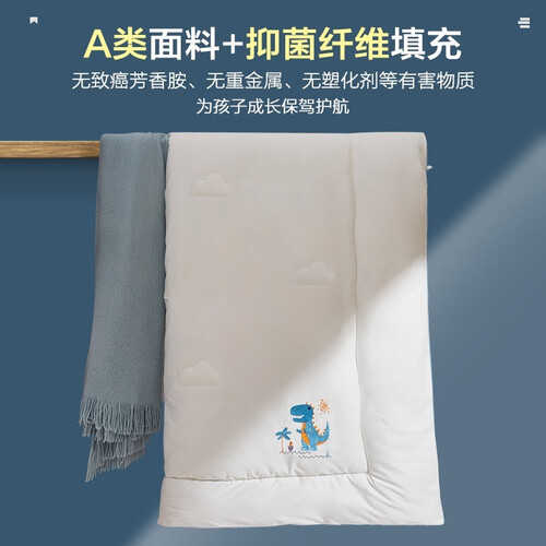融入萌趣的小恐龙刺绣图案,有效增强被子的立体感和时尚感,让卧室自成风景线。填充品质纤维,小朋友也能用。