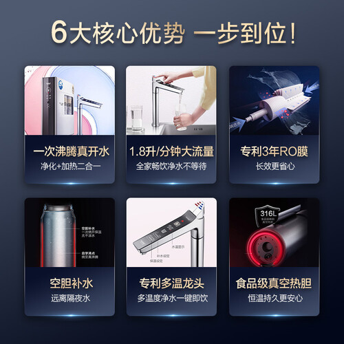 净化和加热二合一的设计,具有较高的利用率,使用便捷省心。支持空胆补水,避免产生千滚水,呵护家人的饮水健康。