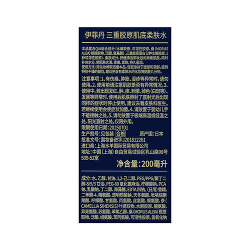 添加了源自北海道生物实验室的三重胶原肽成分,可以从源头缓解肌肤。还添加了多种珍贵提亮成分,能有效缓解暗沉问题。