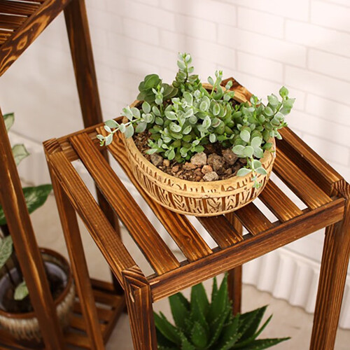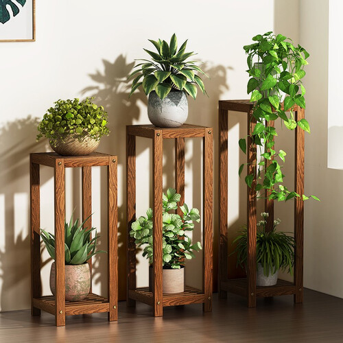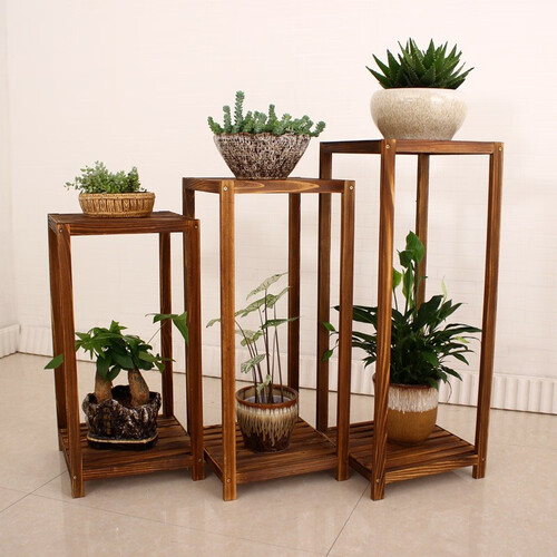 几何镂空的外形设计,可放置各种盆栽,衬托草木的清新之美。精选优质的松木,结实耐用,承重力强。